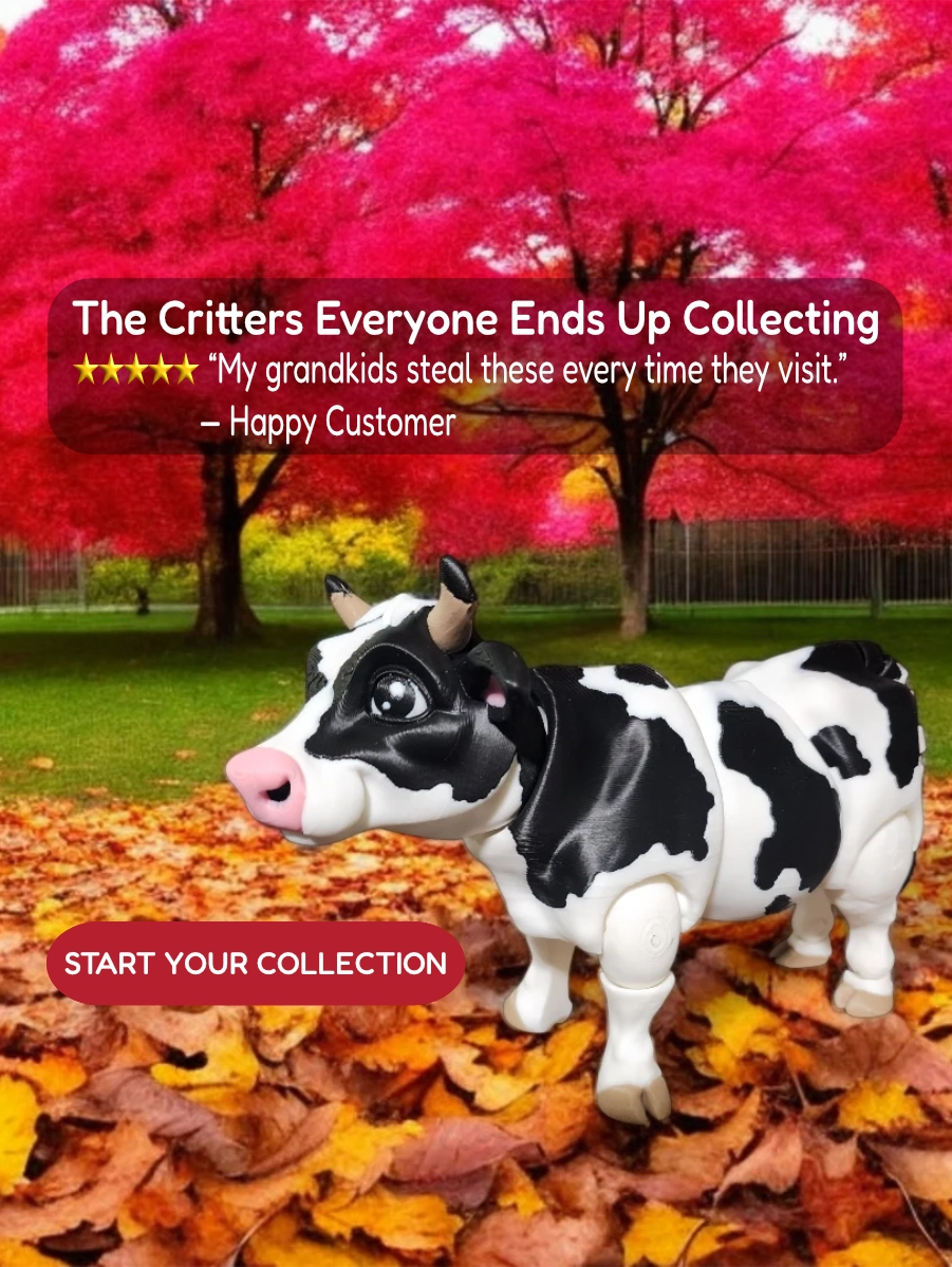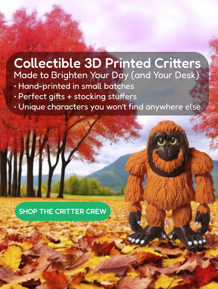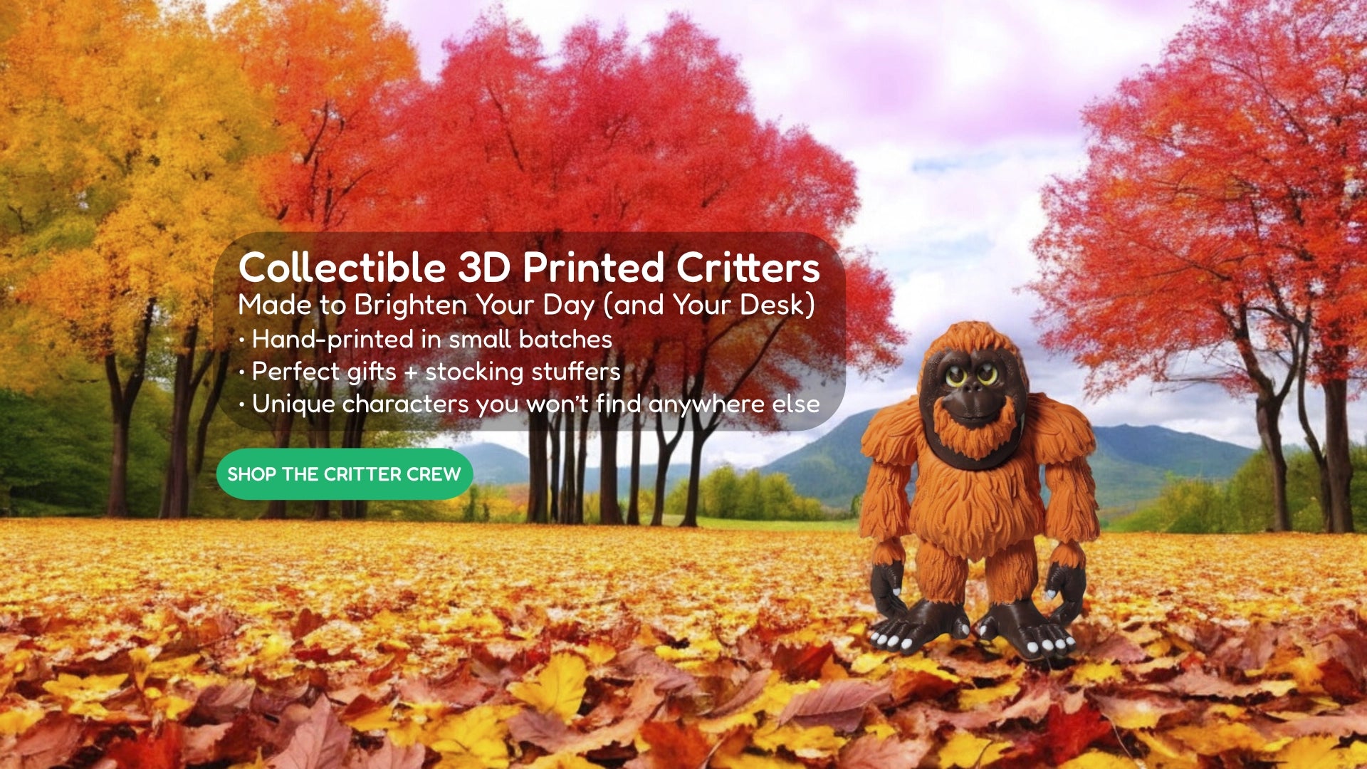 I make whimsical 3D-printed critters that wiggle, flex and bring out your inner kid. Collect them all and keep the joy alive!
